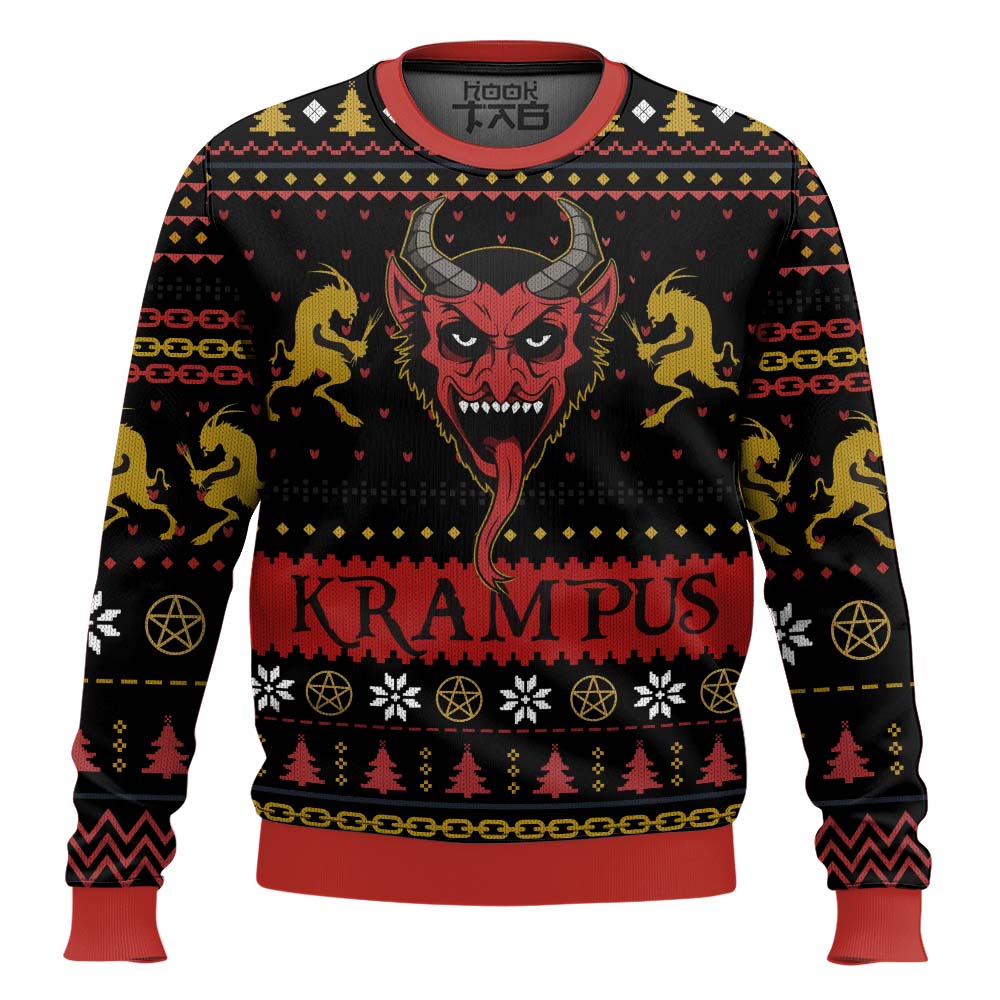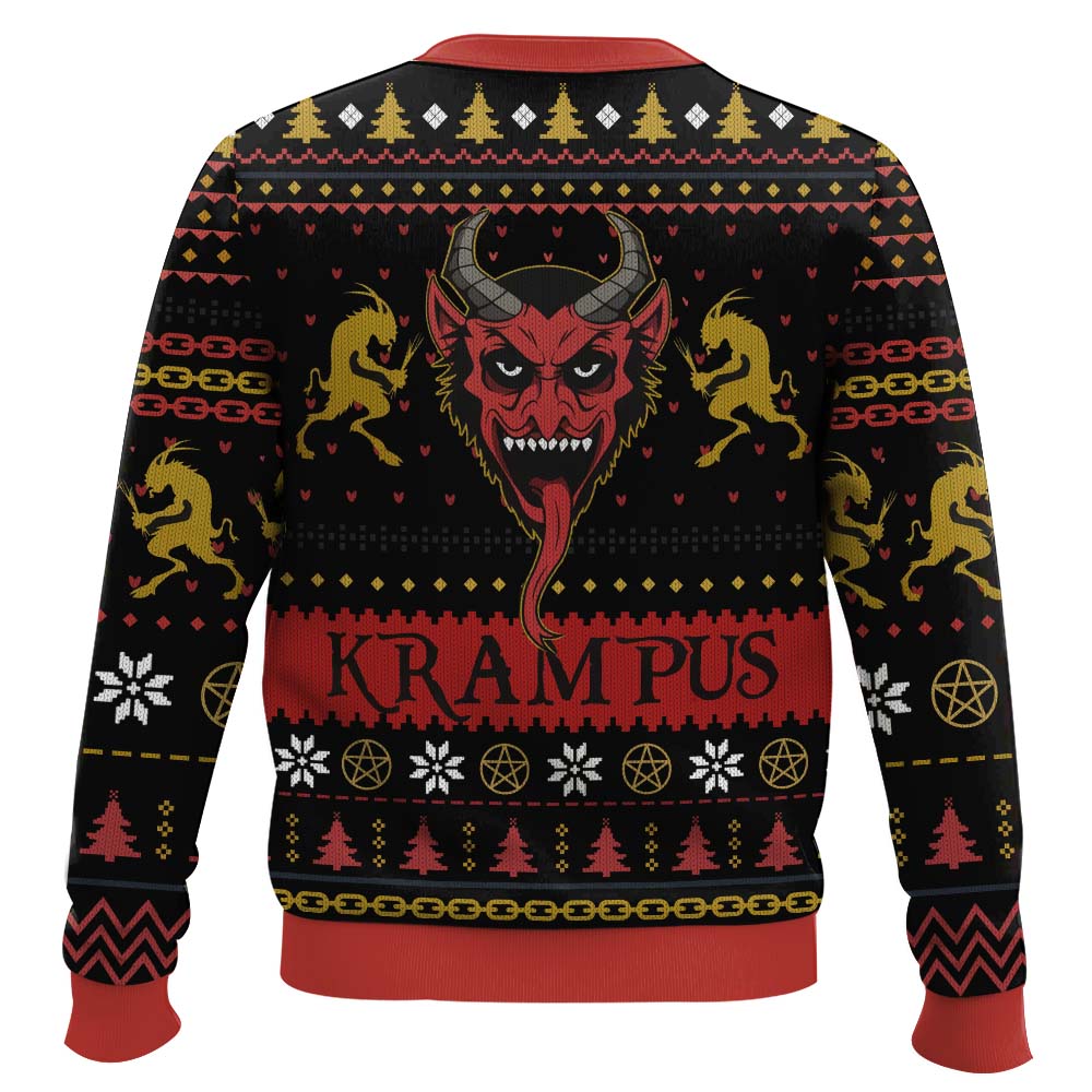 Krampus Krampus Ugly Christmas Sweater This Curvy Glams exclusive Ugly Christmas Sweater design is guaranteed to get attention and get the party started. It?s sure to be your best holiday purchase yet! Material: Our sweaters are made from high-quality polyester wool blend, which keeps you warm and never crack, peel or flake. Features a specialty high definition heat-dye application that ensures long lasting color vibrancy even after machine washing. All our sweaters are handcrafted, cut and sewn one-by-one for the highest quality standard Sizing: Unisex fit. Click on size chart button above add to cart button for addiditional sizing information Care Instructions: Regular handwash; Machine wash (max 40? or 105F); Do not bleach; Iron on a low heat;Tumble dry.