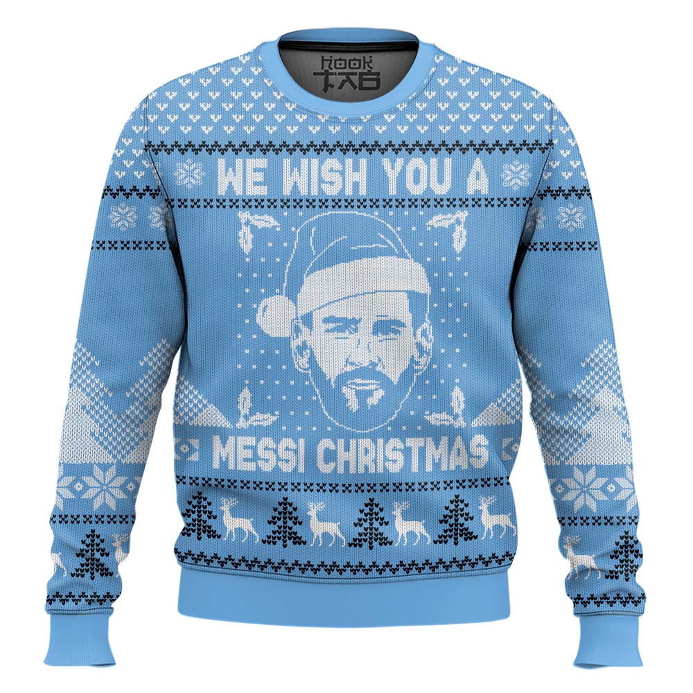 Messi Merry Christmas Ugly Sweater This Curvy Glams exclusive Ugly Christmas Sweater design is guaranteed to get attention and get the party started. It?s sure to be your best holiday purchase yet! Material: Our sweaters are made from high-quality polyester wool blend, which keeps you warm and never crack, peel or flake. Features a specialty high definition heat-dye application that ensures long lasting color vibrancy even after machine washing. All our sweaters are handcrafted, cut and sewn one-by-one for the highest quality standard Sizing: Unisex fit. Click on size chart button above add to cart button for addiditional sizing information Care Instructions: Regular handwash; Machine wash (max 40? or 105F); Do not bleach; Iron on a low heat;Tumble dry.