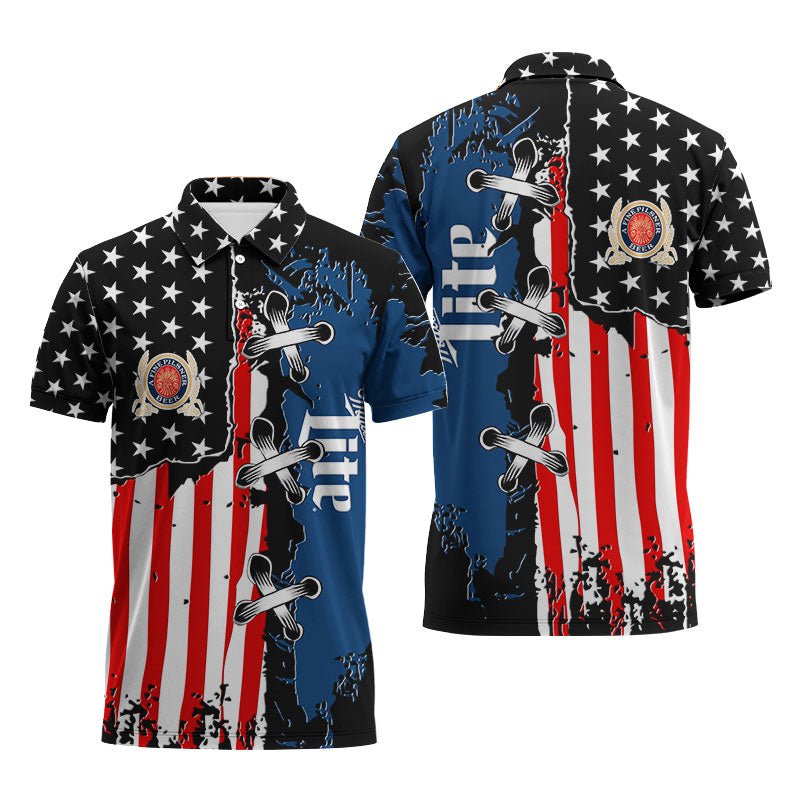 Miller Lite Patriotic Grunge Flag Polo Shirt Miller Lite Patriotic Grunge Flag Polo Shirt