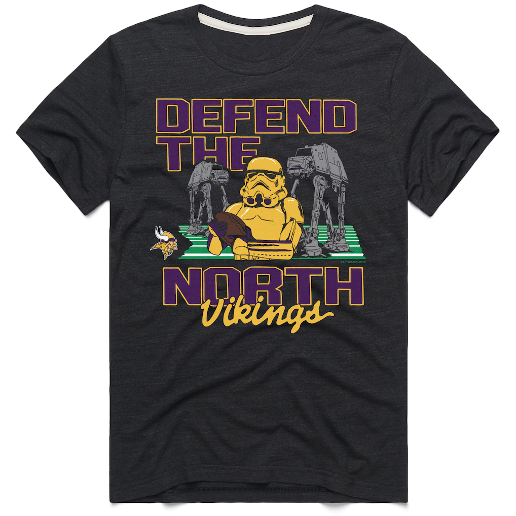 In a galaxy where courage meets conquest, the Minnesota Vikings Charcoal Star Wars x Football League T-Shirt unites the fierce spirit of Minnesota football with the timeless power of the Force. This tee celebrates strength, loyalty, and the relentless pursuit of victory — perfect for fans who charge into every battle, on the field or across the stars.