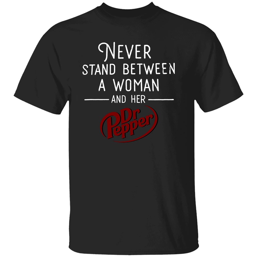 NEVER STAND BETWEEN A WOMAN AND HER DR PEPPER SHIRT NEVER STAND BETWEEN A WOMAN AND HER DR PEPPER SHIRT