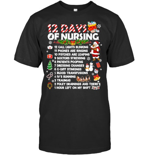 Nurses Merry Christmas Funny 12 Days Of Nursing Xmas Women T Shirt