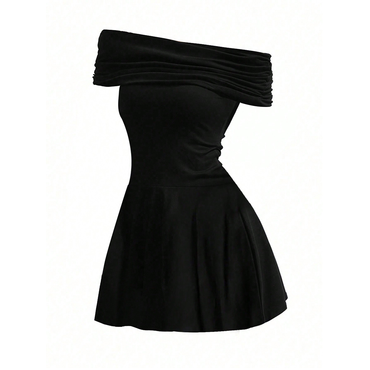 Off-Shoulder High-Waist Dress – Summer Exposed Clavicle Mini Skirt