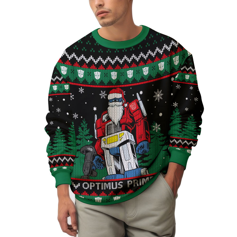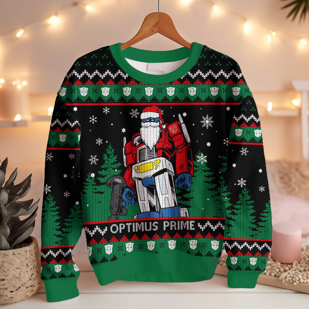 Optimus Prime -Transformers Ugly Sweater This Curvy Glams exclusive Ugly Christmas Sweater design is guaranteed to get attention and get the party started. It?s sure to be your best holiday purchase yet! Material: Our sweaters are made from high-quality polyester wool blend, which keeps you warm and never crack, peel or flake. Features a specialty high definition heat-dye application that ensures long lasting color vibrancy even after machine washing. All our sweaters are handcrafted, cut and sewn one-by-one for the highest quality standard Sizing: Unisex fit. Click on size chart button above add to cart button for addiditional sizing information Care Instructions: Regular handwash; Machine wash (max 40? or 105F); Do not bleach; Iron on a low heat;Tumble dry.