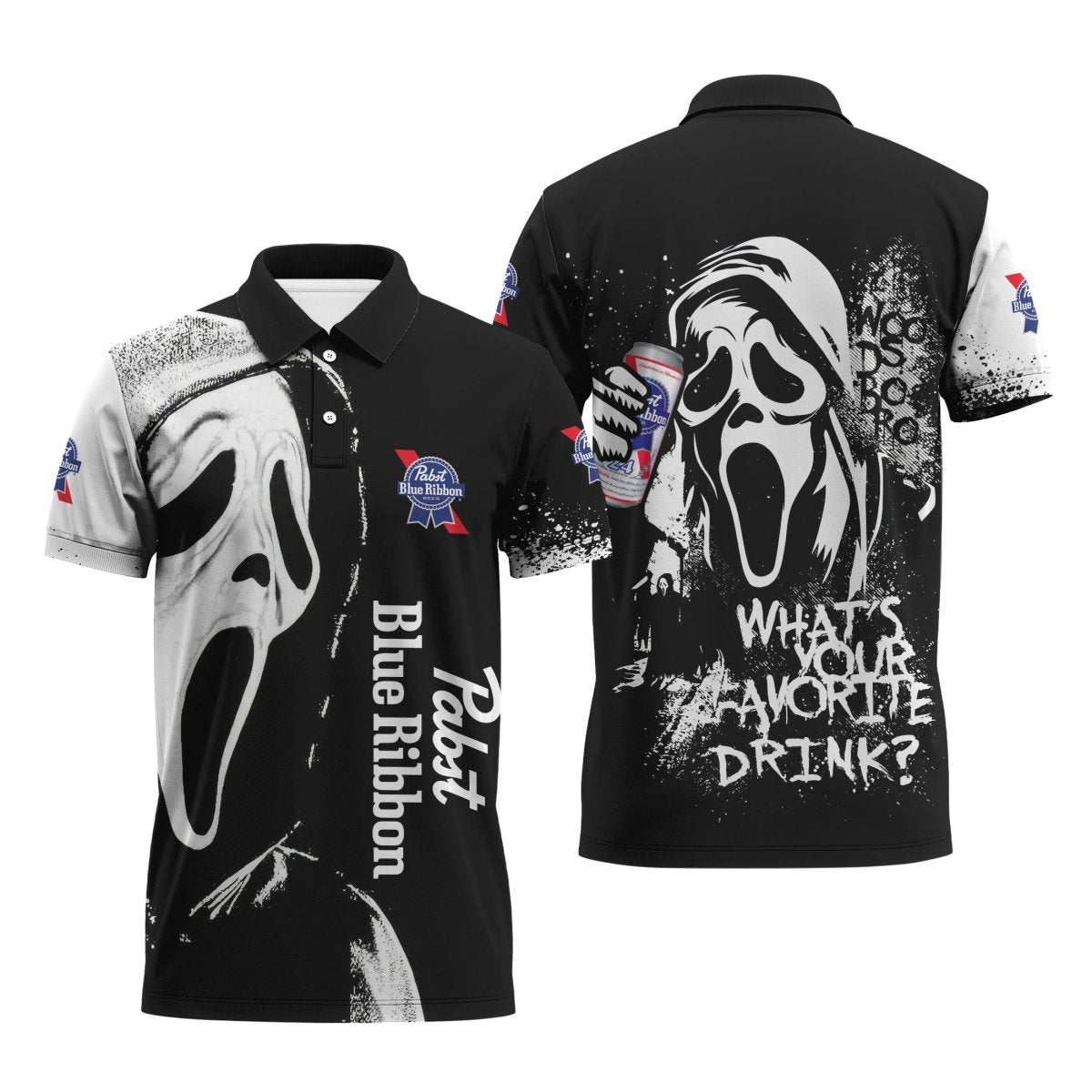 In summary, the Pabst Blue Ribbon Ghostface Scream Polo Shirt is a versatile, stylish, and practical addition to any wardrobe. Its exceptional fabric, comfortable fit, and unique design make it a standout piece for any casual occasion. Whether you’re buying it for yourself or as a gift, this polo shirt is sure to become a favorite. Experience the perfect blend of style and comfort with the Pabst Blue Ribbon Ghostface Scream Polo Shirt.