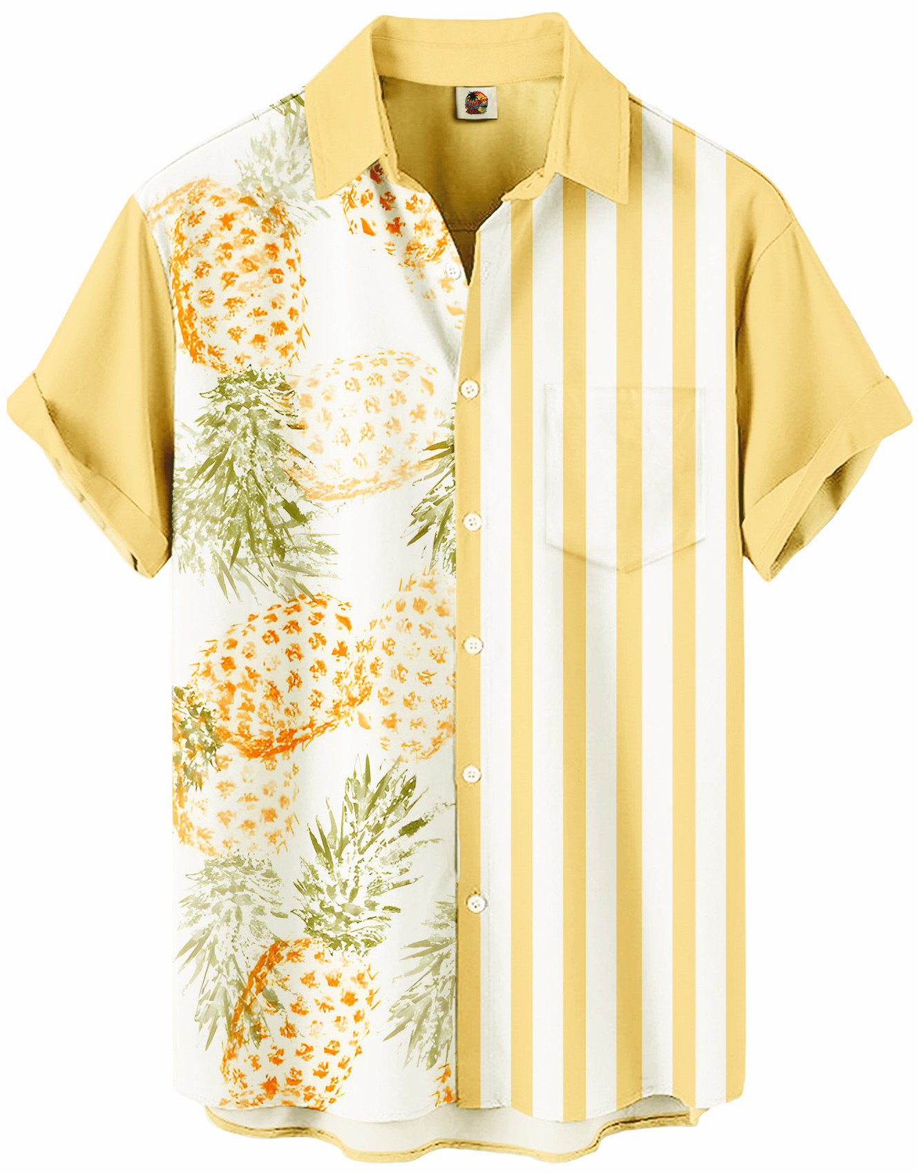 Pineapple Hawaiian Shirt – Yellow and White Stripe