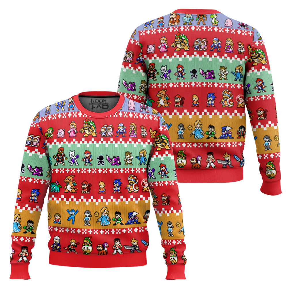 Pixel Smash Super Smash Bros Ugly Christmas Sweater