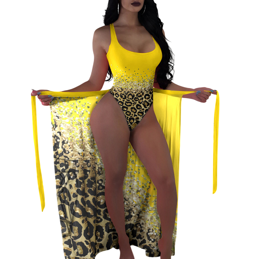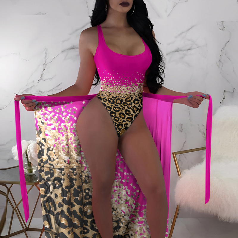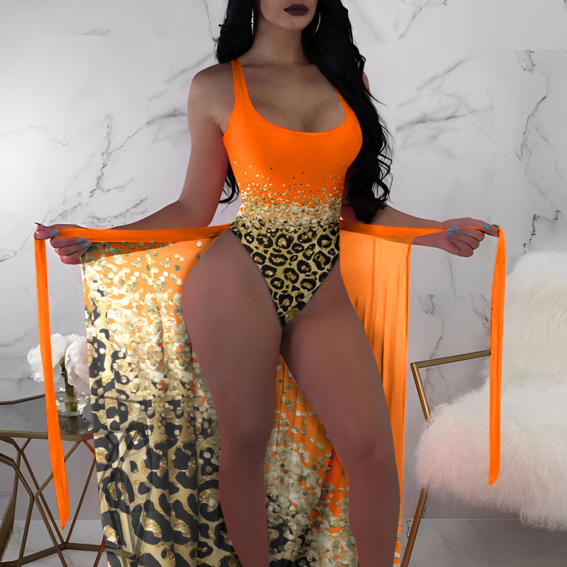 Plus Size Leopard One-Piece Swimsuit – Backless Monokini with Sarong