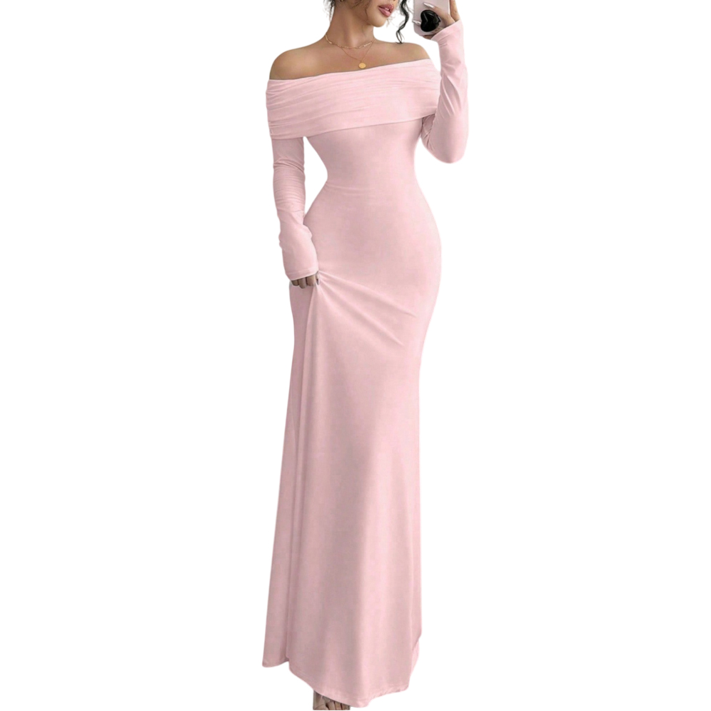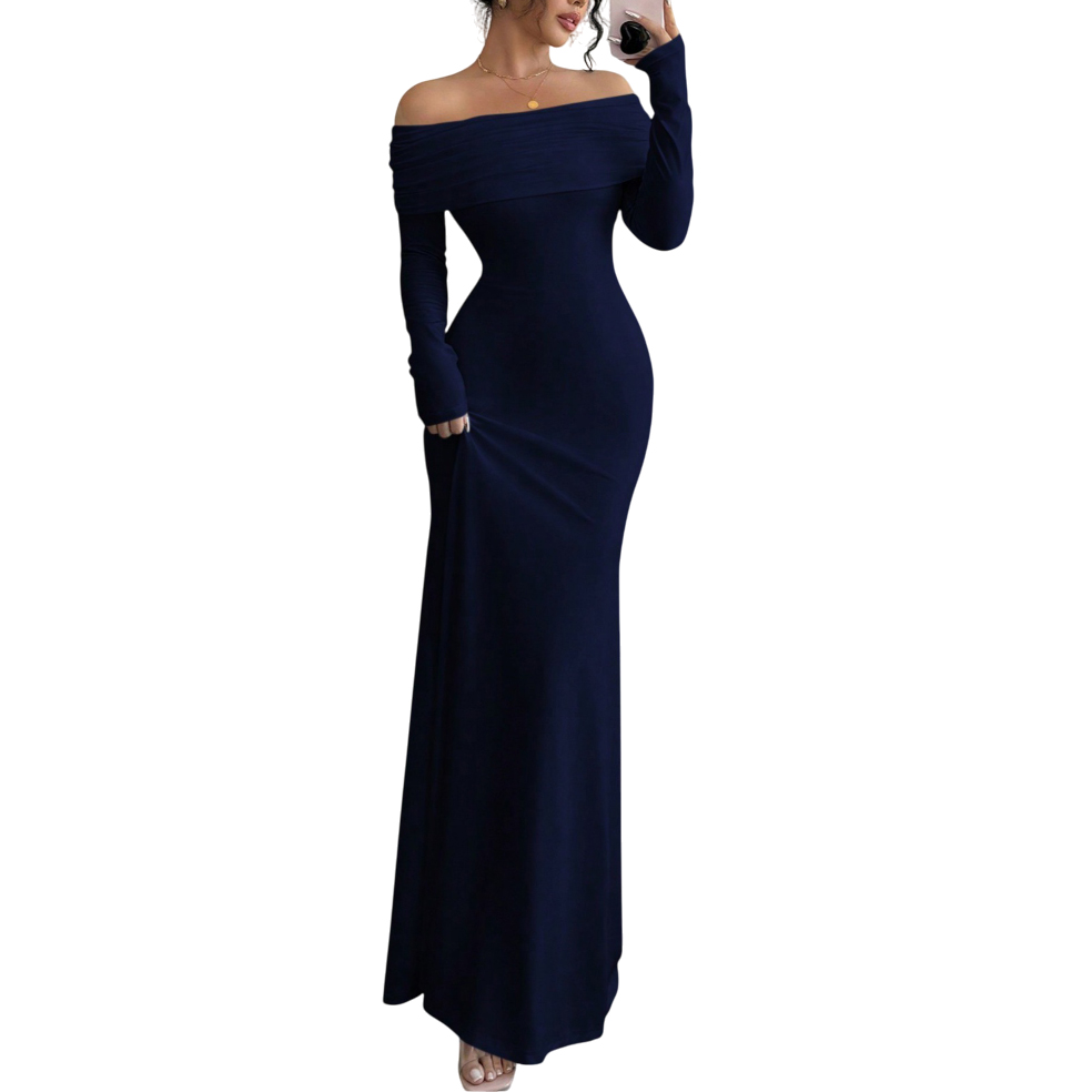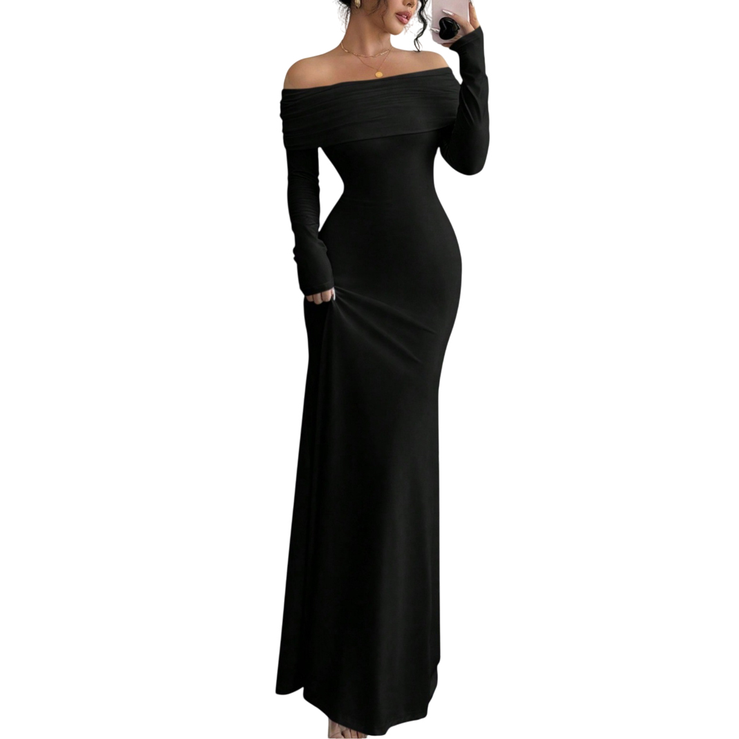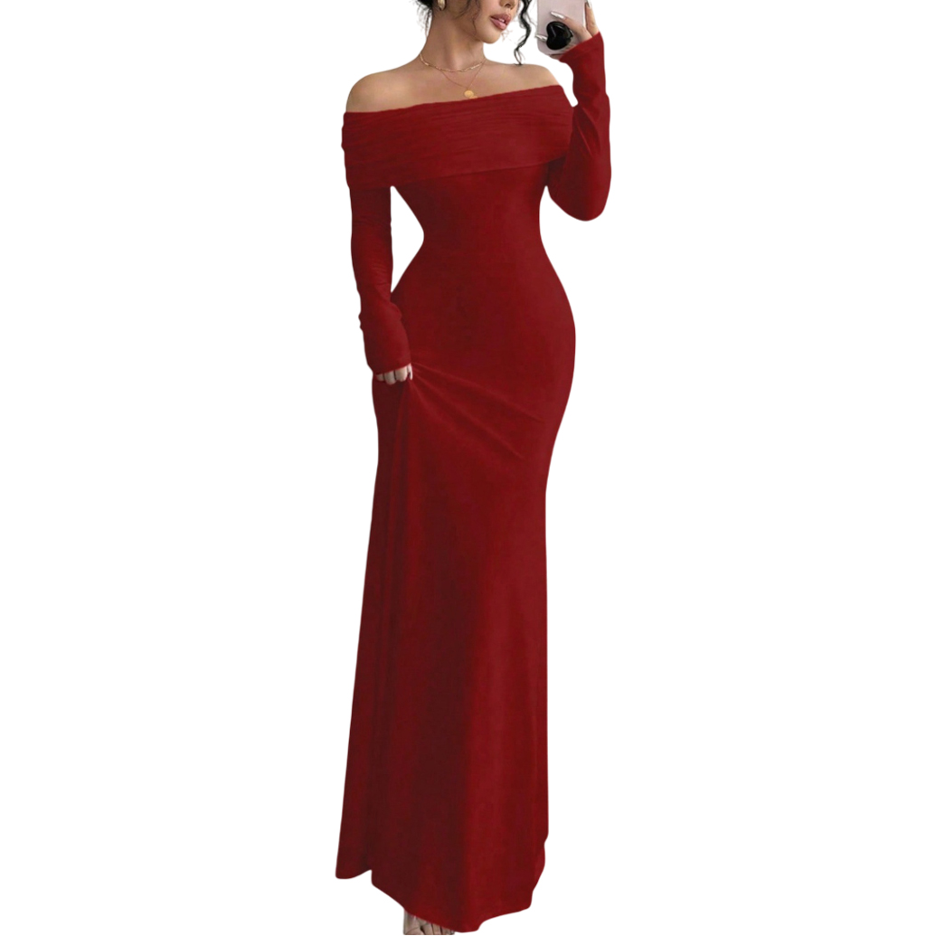 Plus Size Women's Off-Shoulder Sleeveless Pleated Bodycon Hip-Wrapped Long Evening Dress