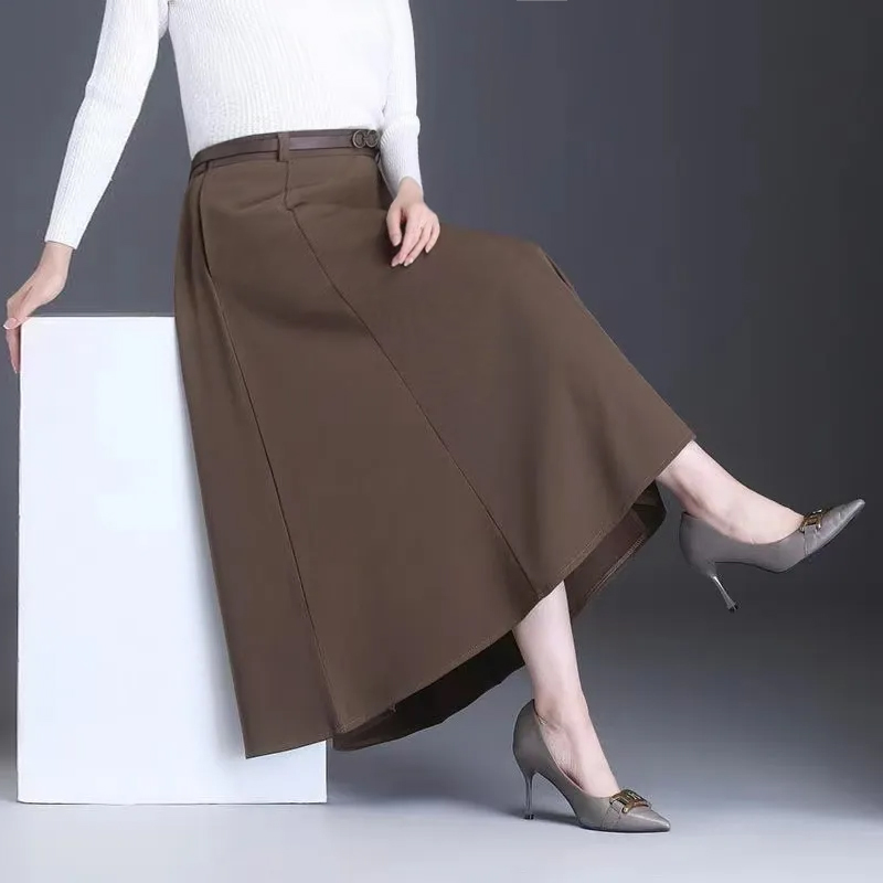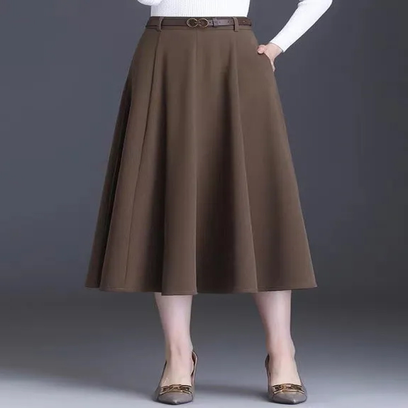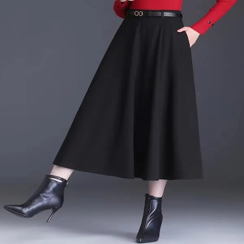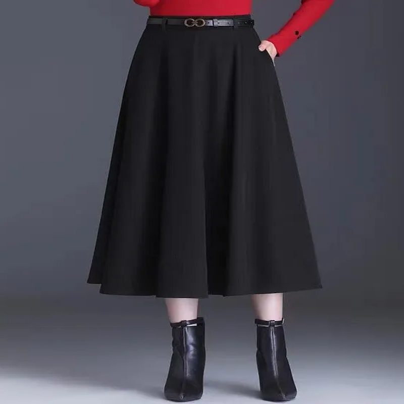 Plus Size Wool Pleated Midi Skirt – Warm & Elegant Swing Style
