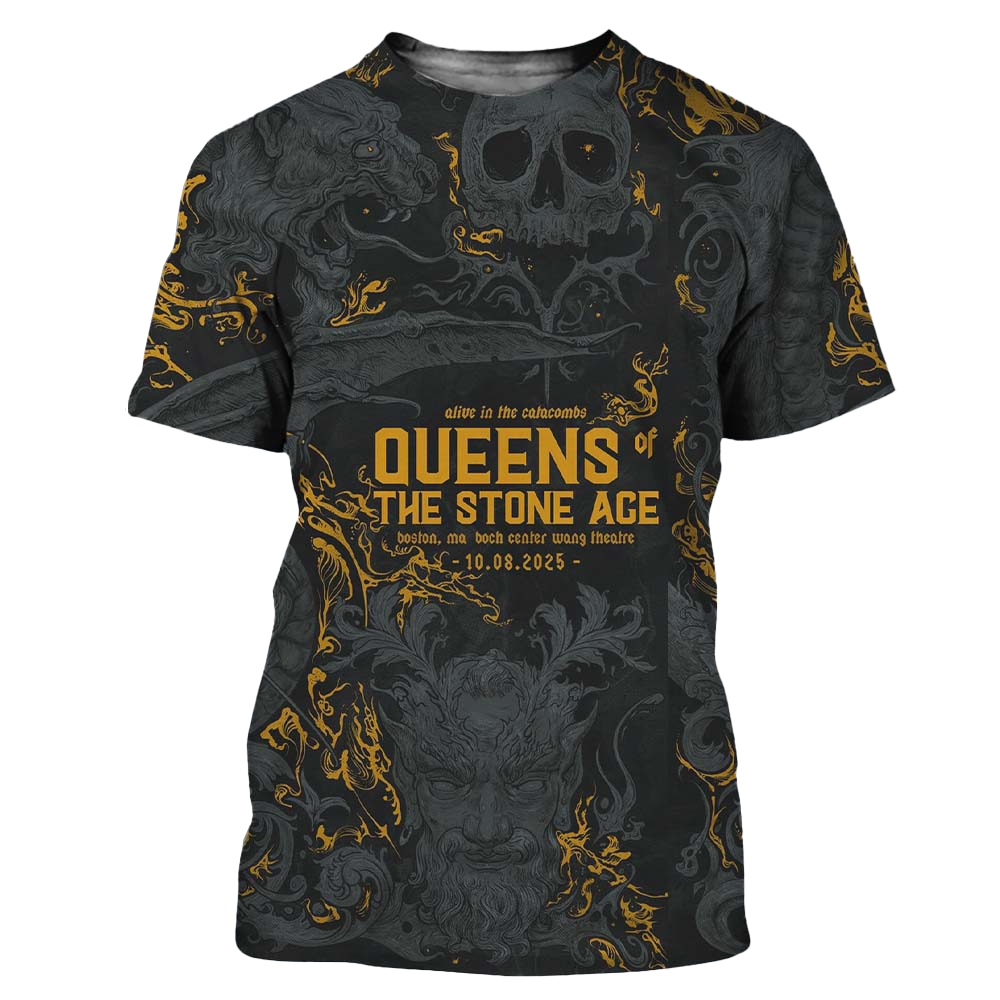 Get ready to rock with the Queens of the Stone Age Boston 2025 Alive in the Catacombs T-Shirt, celebrating their electrifying performance at the Boch Center Wang Theatre on October 8, 2025. This shirt commemorates one of the most anticipated shows of the year, designed for fans who want to relive the energy and intensity of the night. Featuring the Alive in the Catacombs design, it’s a must-have for anyone who was there or anyone who wants to show off their love for one of rock’s most iconic bands.