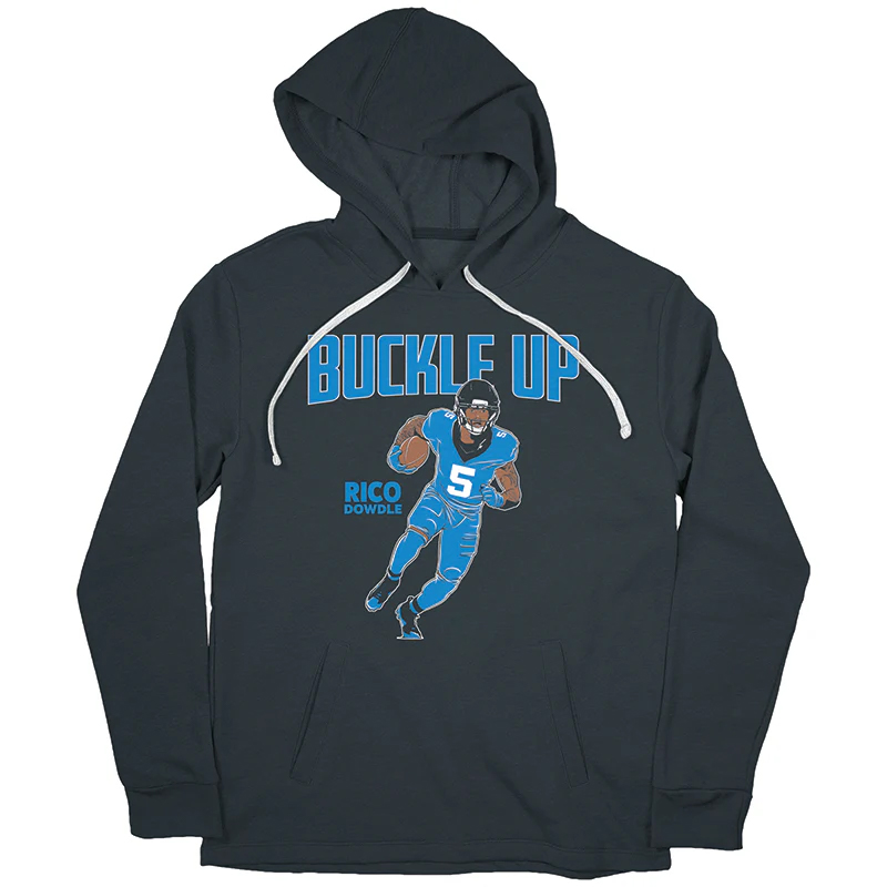 Rico Dowdle’s ability to turn the game in an instant is what makes him one of the most exciting players to watch. With his combination of speed, vision, and toughness, he embodies the spirit of the game and leaves defenders in the dust. The Buckle Up shirt is a celebration of his playing style — fast, relentless, and always ready for the next big moment.