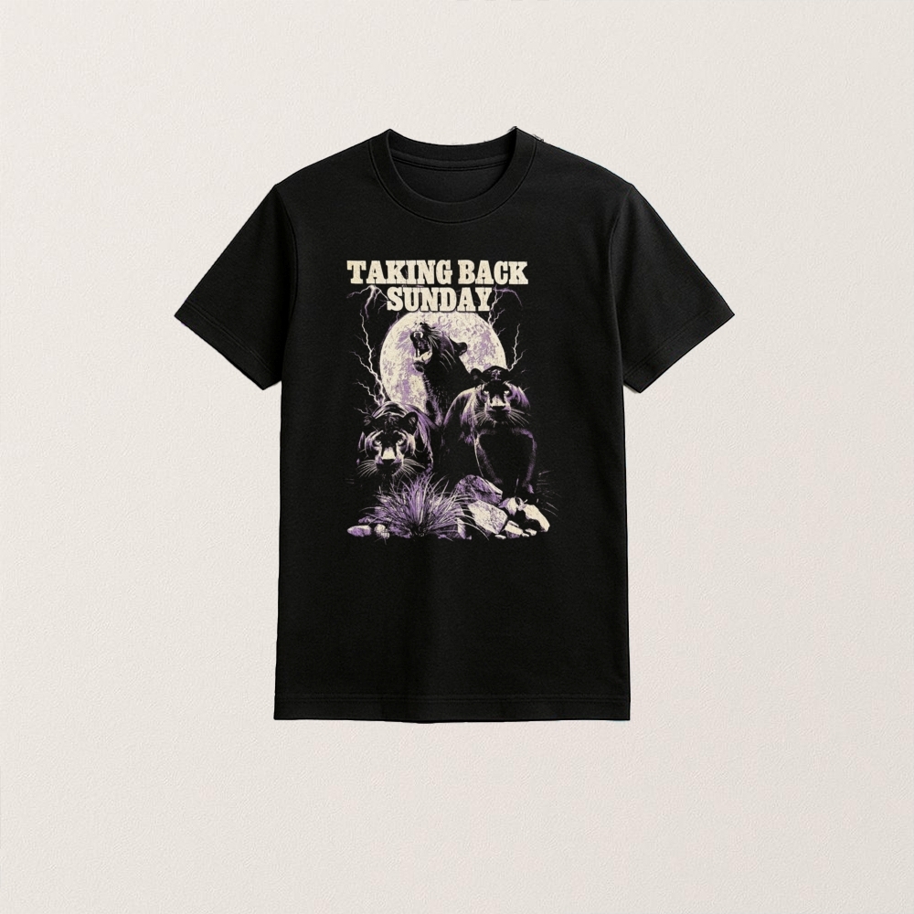 Whether you’re running an online store, designing a team shirt, or looking for a reliable blank to showcase your artwork—this The product is a graphic T-shirt featuring a panther moon design by the band Taking Back Sunday. gives you the quality foundation you need.