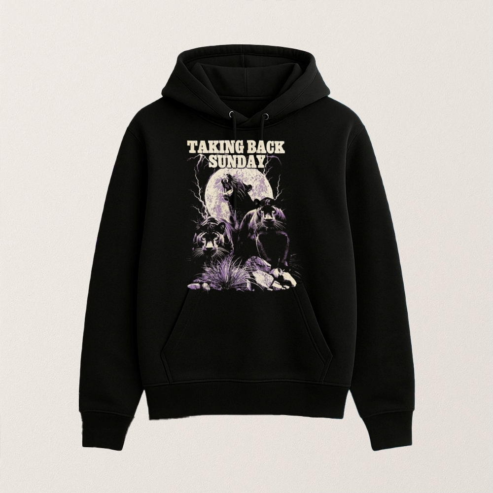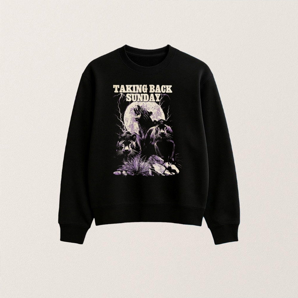 The Taking Back Sunday Panther Moon Graphic T-Shirt is a striking piece of apparel that captures the essence of the iconic rock band with a bold and artistic design. Featuring a dynamic illustration of a panther set against a mystical moonlit backdrop, this shirt embodies the energy and spirit of Taking Back Sunday’s music. Crafted from high-quality materials, it offers both comfort and style, making it a perfect choice for fans who want to showcase their love for the band. Whether worn at concerts or as a casual statement piece, this graphic tee is a must-have for any Taking Back Sunday enthusiast.