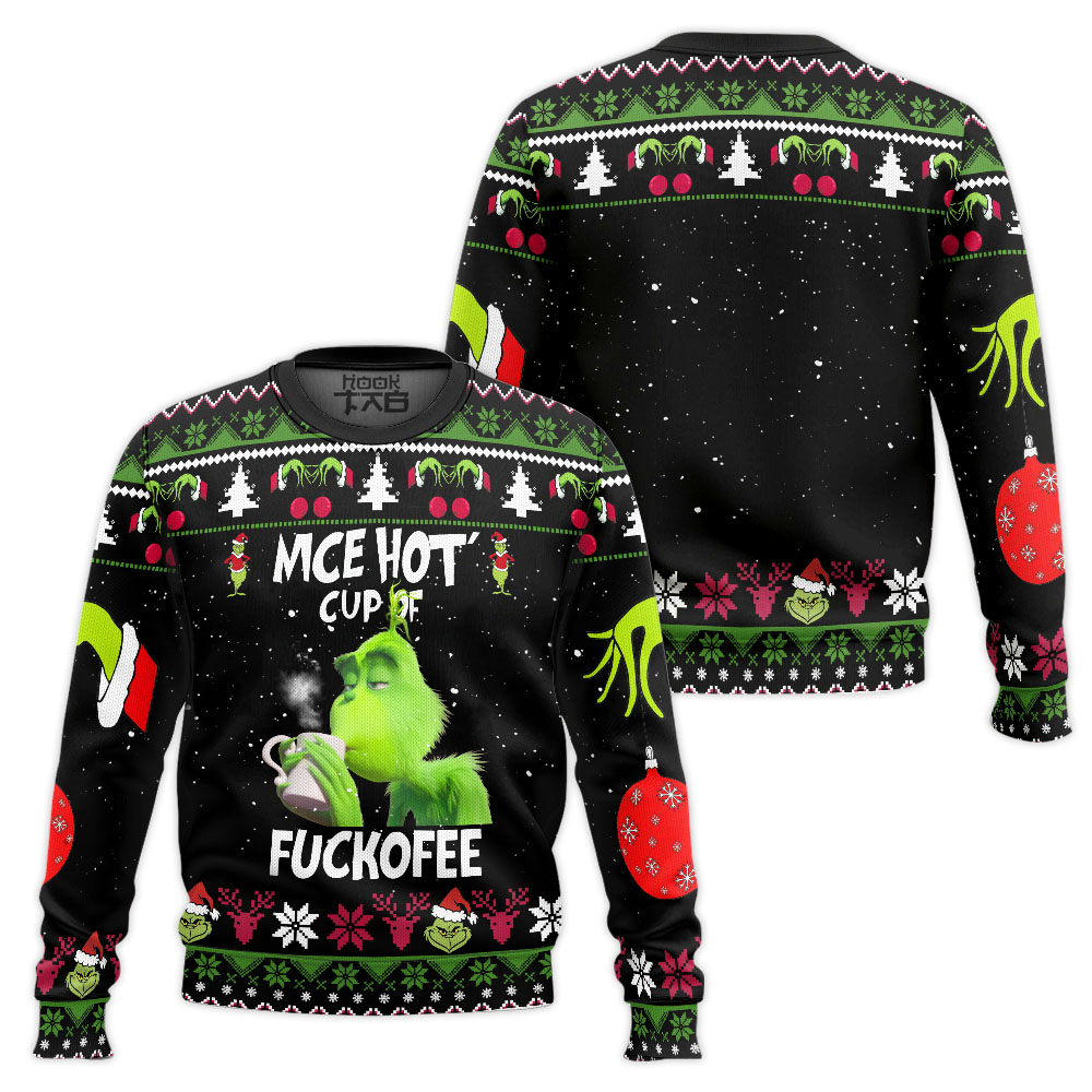 The Grinch Nice Hot Cup Of Christmas Holiday Ugly Sweater This Curvy Glams exclusive Ugly Christmas Sweater design is guaranteed to get attention and get the party started. It?s sure to be your best holiday purchase yet! Material: Our sweaters are made from high-quality polyester wool blend, which keeps you warm and never crack, peel or flake. Features a specialty high definition heat-dye application that ensures long lasting color vibrancy even after machine washing. All our sweaters are handcrafted, cut and sewn one-by-one for the highest quality standard Sizing: Unisex fit. Click on size chart button above add to cart button for addiditional sizing information Care Instructions: Regular handwash; Machine wash (max 40? or 105F); Do not bleach; Iron on a low heat;Tumble dry.