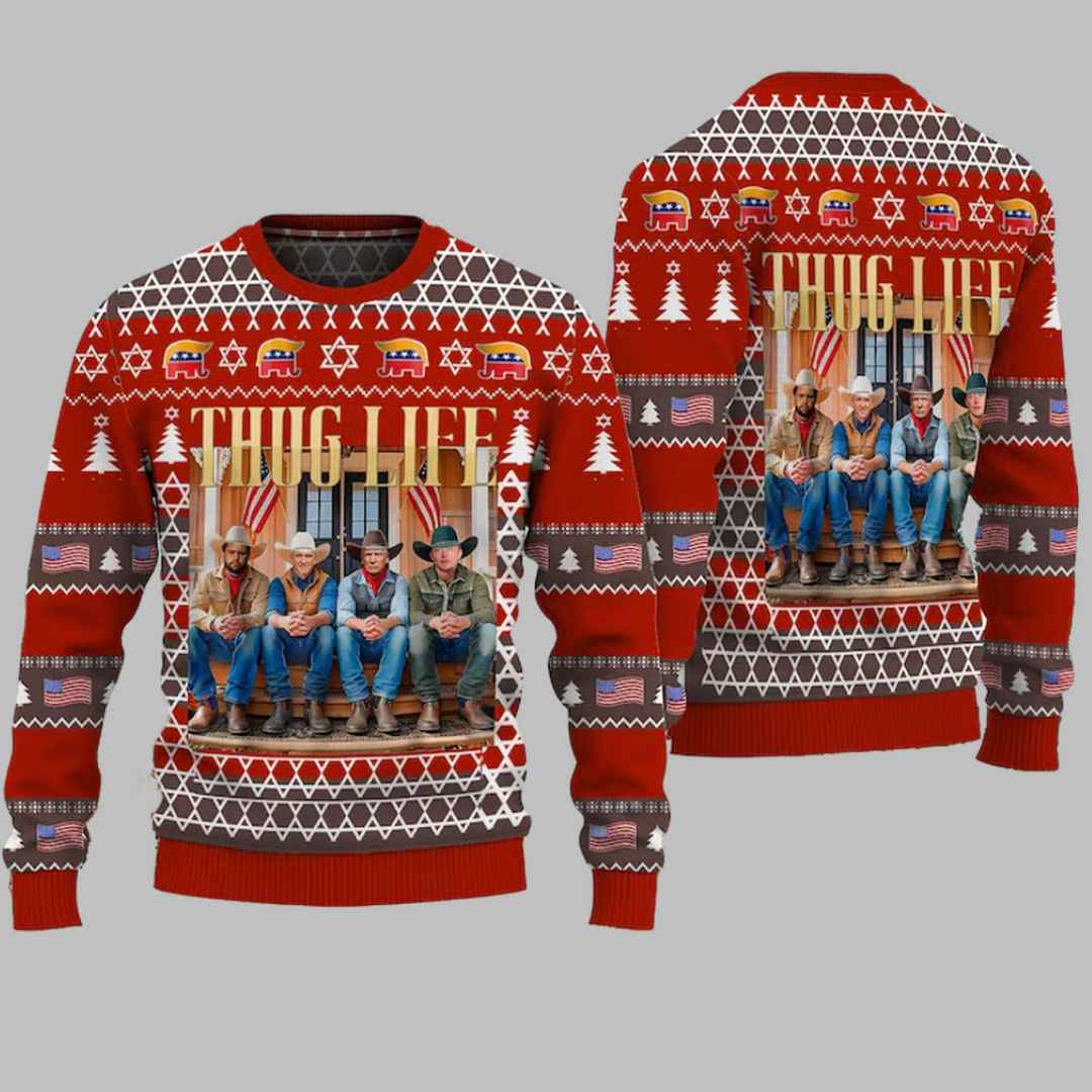 Celebrate the holiday season with a twist of humor and style in the Thug Life Trump Vance Kennedy Elon Ugly Christmas Sweater! This bold, comfortable sweater is perfect for anyone looking to make a statement at holiday gatherings, ugly sweater contests, or family get-togethers. With its unique design, cozy fit, and festive flair, it?s a must-have for holiday fashion with personality. Don?t miss the chance to bring laughs and cheer to your holiday season?grab your Thug Life Trump Vance Kennedy Elon Ugly Christmas Sweater today and make every celebration unforgettable!
