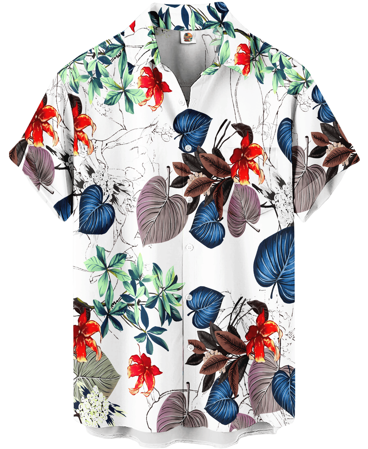 Tropical Leaves Hawaiian Shirt – White Floral Tropical Leaves Hawaiian Shirt – White Floral