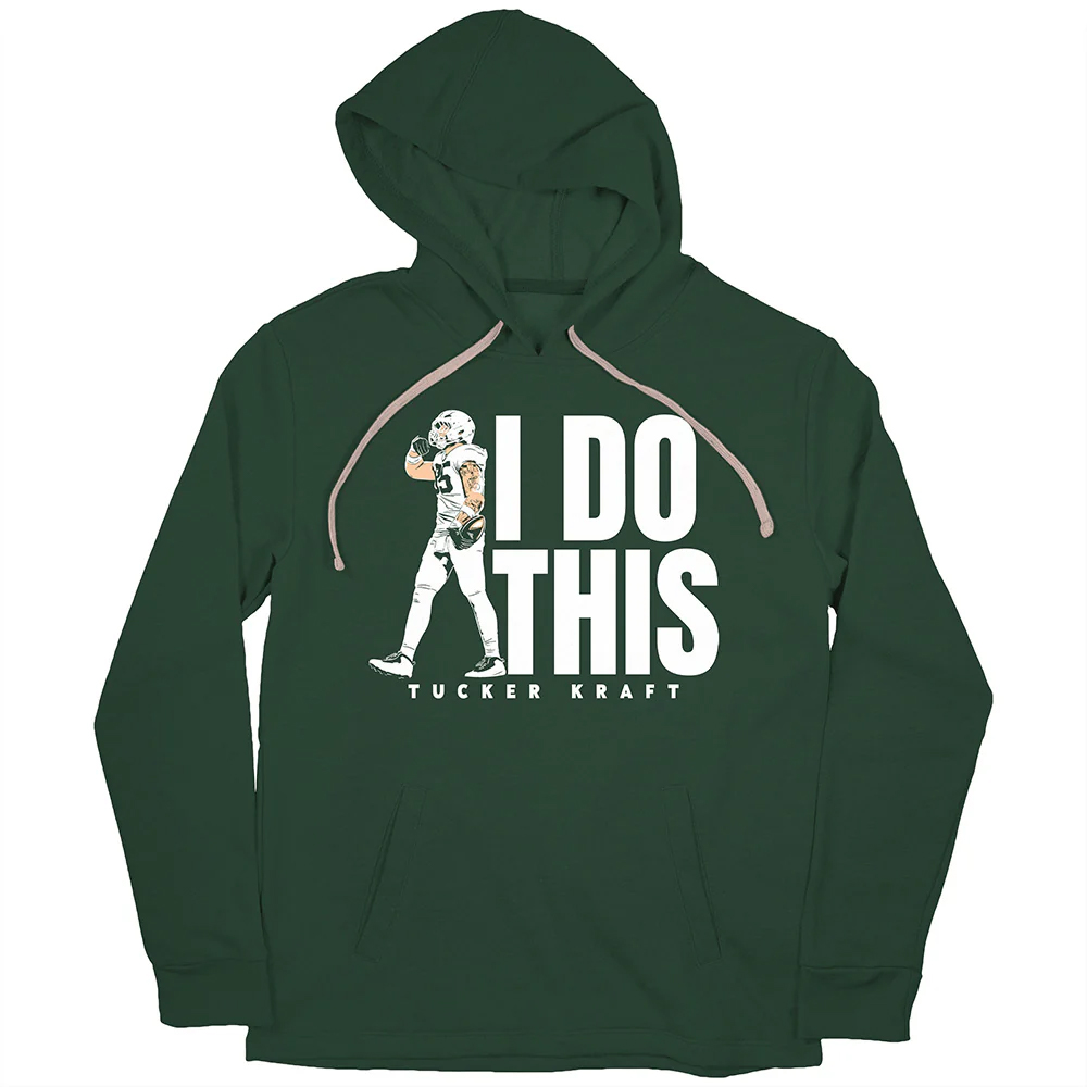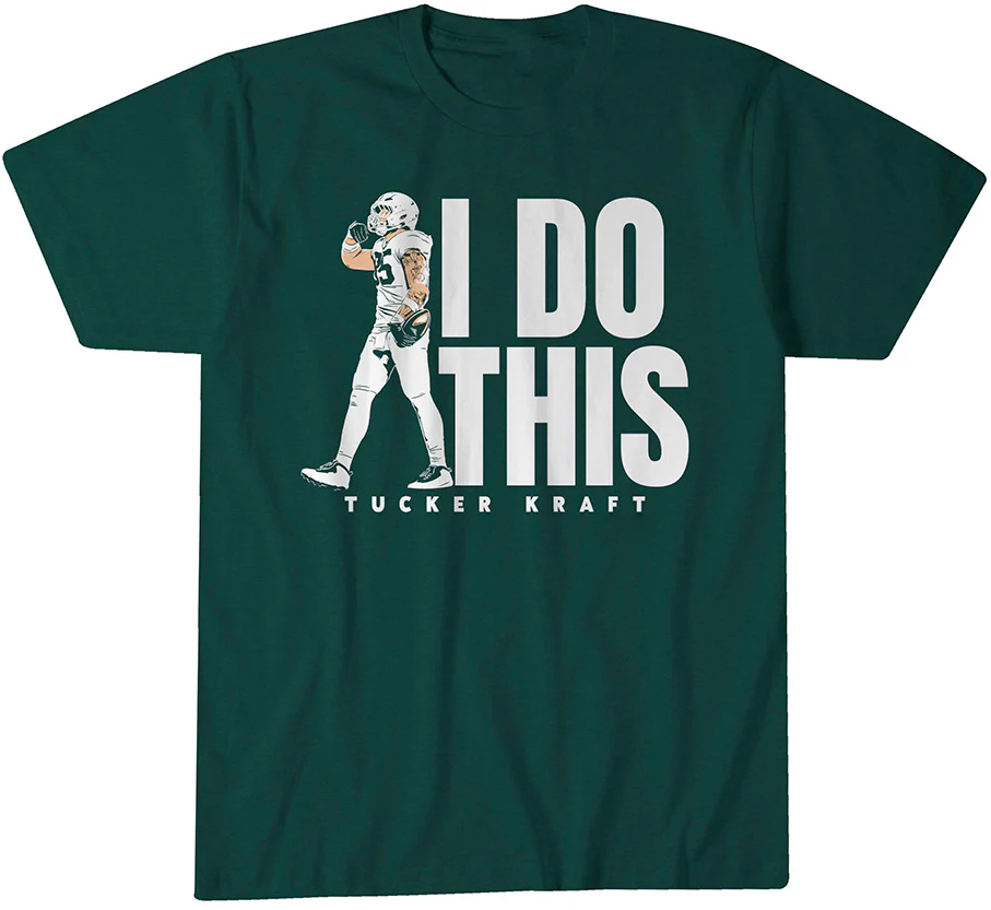 For fans who believe in hard work and heart, this shirt embodies the relentless drive that defines Tucker Kraft. The bold “I Do This” slogan across the chest says it all — no hype needed, just results. It’s a tribute to the Green Bay spirit and the players who put everything on the line each game.