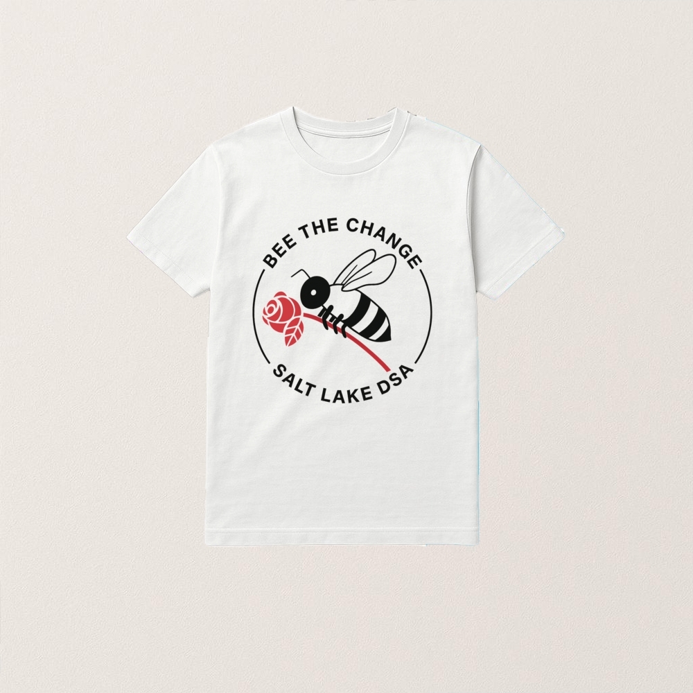 Tyler Robinson is a passionate advocate for social justice and environmental sustainability, and his “Bee The Change” Salt Lake DSA shirt embodies these values. The shirt, designed for the Salt Lake chapter of the Democratic Socialists of America, features a vibrant bee graphic symbolizing community, hard work, and the importance of collective action. By wearing this shirt, Tyler not only supports the DSA’s mission to promote equality and social welfare but also raises awareness about the critical role bees play in our ecosystem. The “Bee The Change” shirt serves as a call to action, encouraging individuals to contribute to positive change in their communities and the world at large.