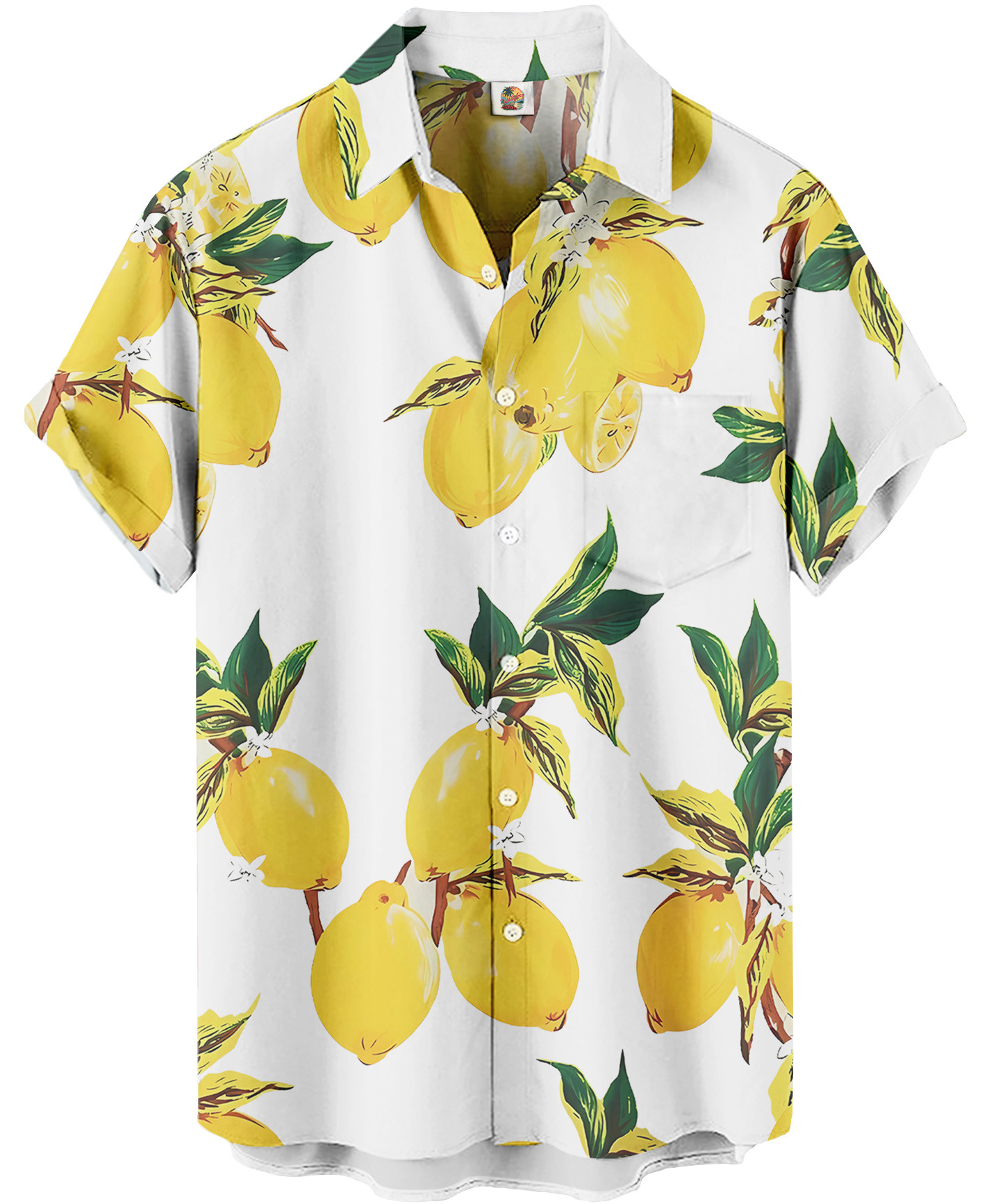 Bring fresh, citrus-inspired vibes to your wardrobe with the Unisex Hawaiian Lemon Print Shirt. Featuring vibrant yellow lemons on a crisp white background, this short sleeve button-down shirt combines tropical charm with everyday comfort, perfect for beach outings, summer parties, or casual wear.