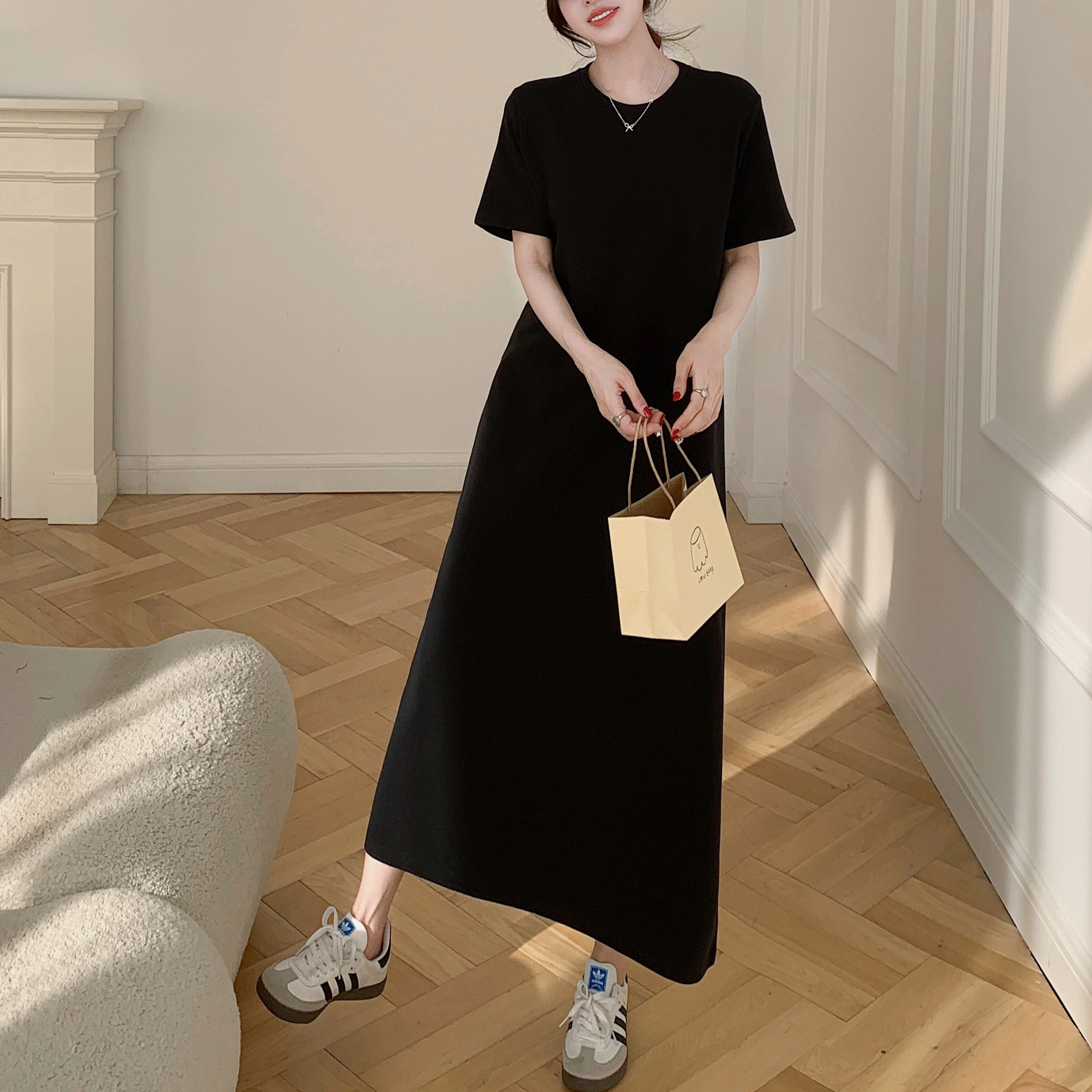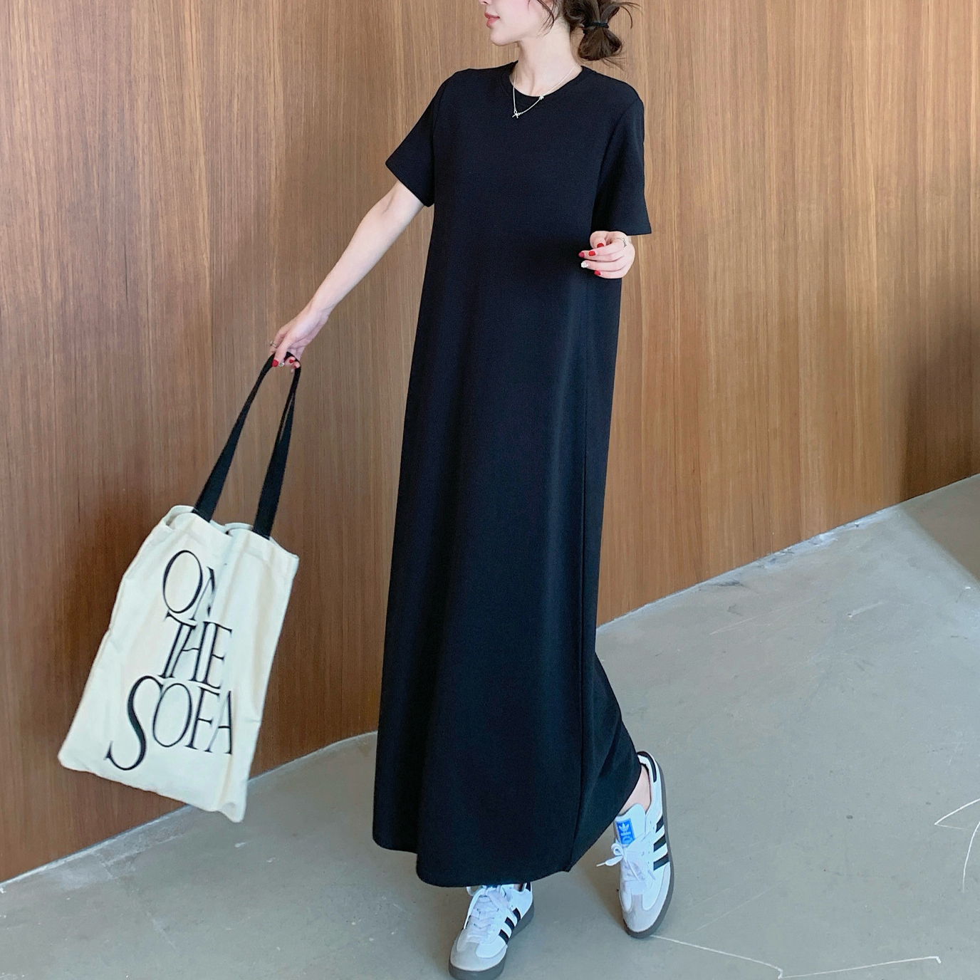 Show off your style with this sleek and easygoing black patch split tee, ideal for wedding gatherings or relaxed weekends. Designed in a regular-fit midi length with a natural mid waistline, this tee combines a modern look with breathable comfort. Crafted from 100% polyester knitted fabric, it provides slight stretch and smooth wearability. Perfect for pairing with your favorite jeans or skirts, this piece brings out your effortless charm.