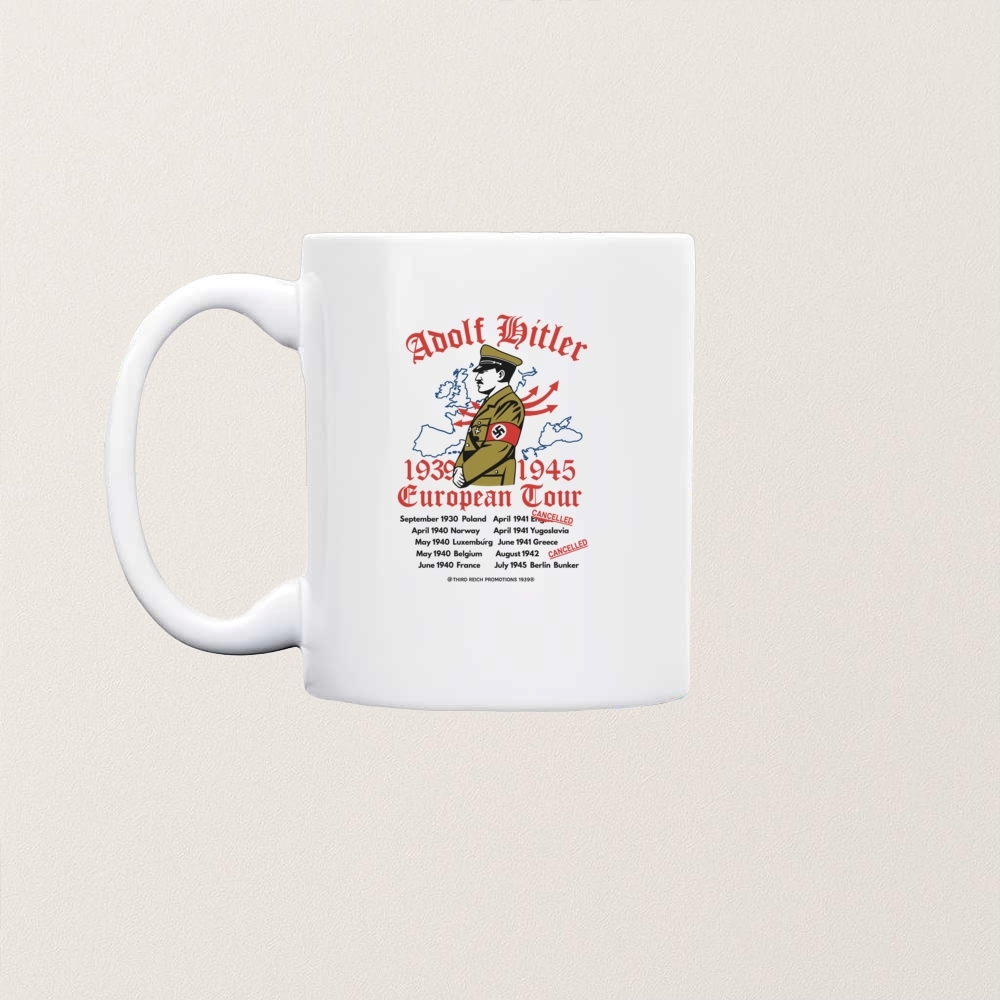 The Adolf Hitler European Tour 1939-1945 T-shirt is a provocative piece of clothing that draws on the historical context of World War II, a period marked by significant events such as the invasion of Poland, the Battle of Britain, and the Holocaust. These events have left an indelible mark on history, sparking debates and controversies that continue to capture the public’s imagination. The shirt’s design, often seen as controversial or in poor taste, plays on the idea of a “tour” to highlight the widespread impact of Nazi aggression across Europe. This has led to discussions about the appropriateness of using such imagery in fashion, as it can be seen as trivializing the atrocities committed during the war. The shirt serves as a reminder of the power of historical events to inspire a wide range of creative expressions, from serious commemorations to satirical or provocative statements.